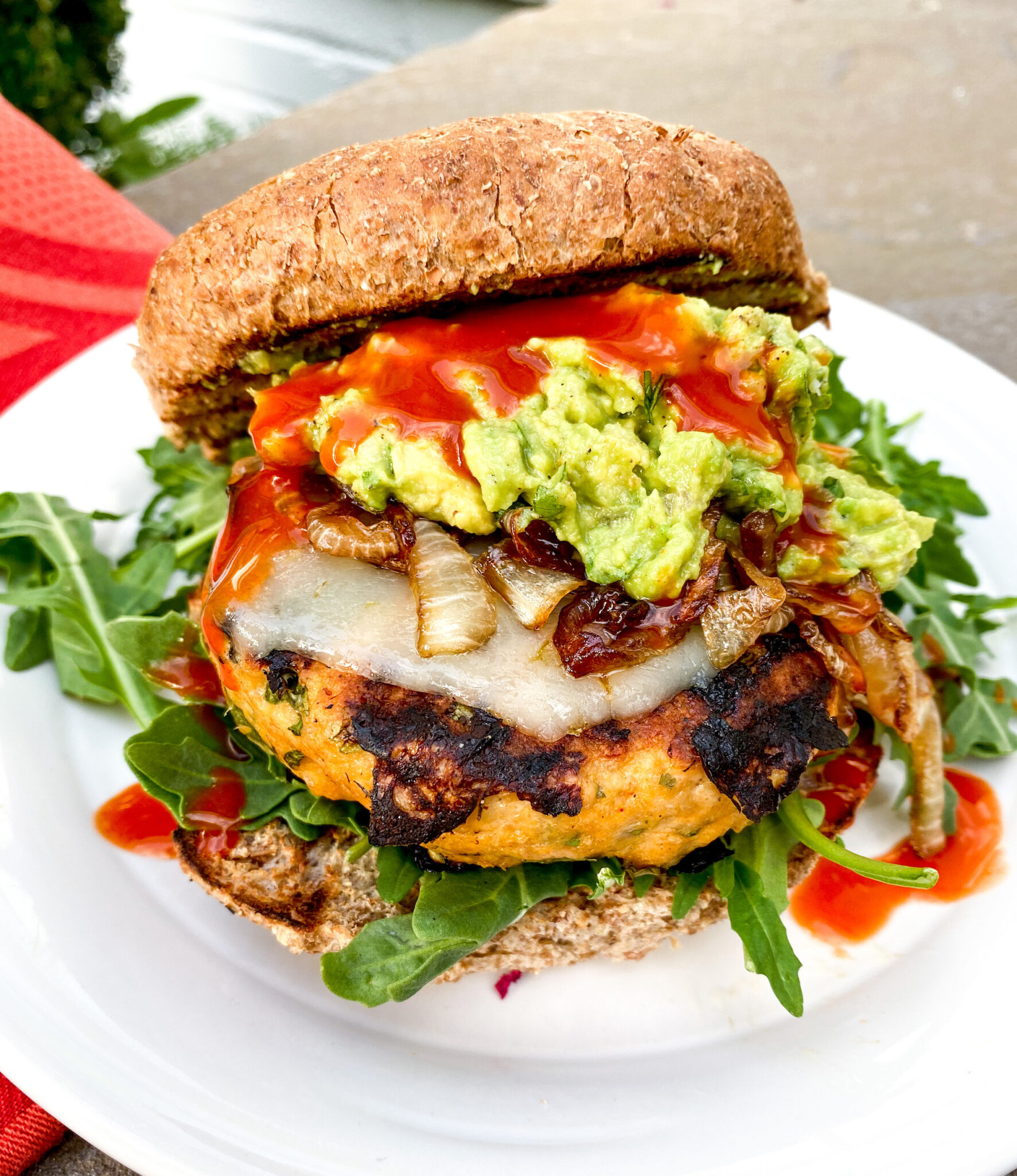Tomato, lettuce, red onion, jalapeno, guacamalo sauce, brioche bun.